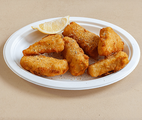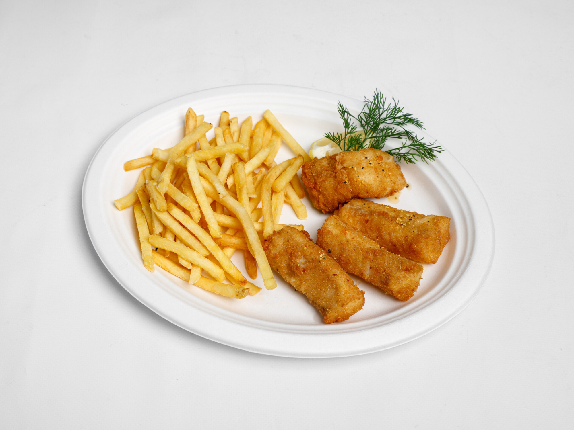 Nuggetsy 8 szt., 2x małe frytki, onion rings 6 szt., 2 wybrane sosy